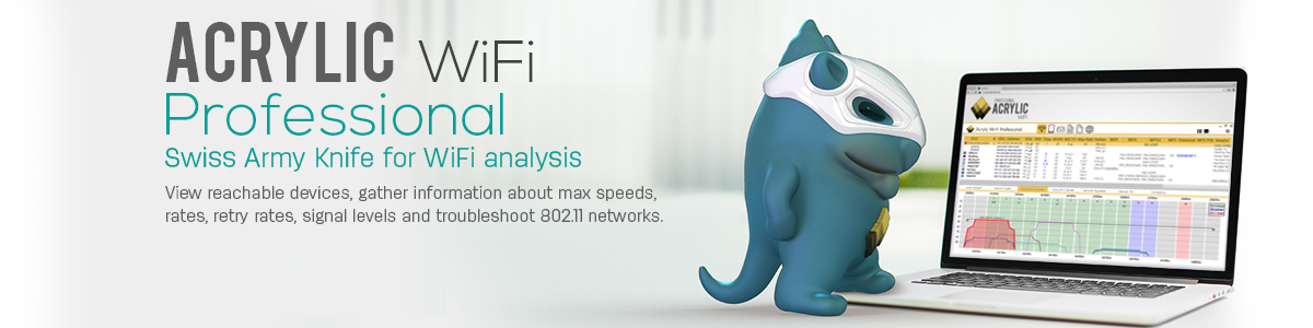 Acrylic WiFi Professional is the best WiFi analyzer software to identify access points and wifi channels, and to analyze and resolve incidences on 802.11a/b/g/n/ac wireless networks in real time.