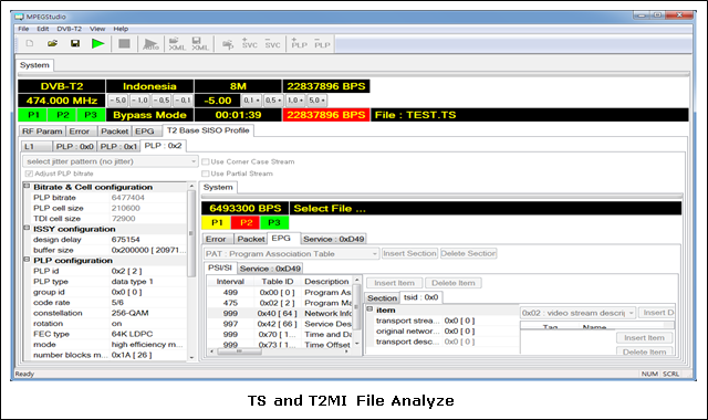 Hỗ trợ phân tích, chỉnh sửa, tạo DVB-T2 (T2MI) (Single PLP & Multi PLP)