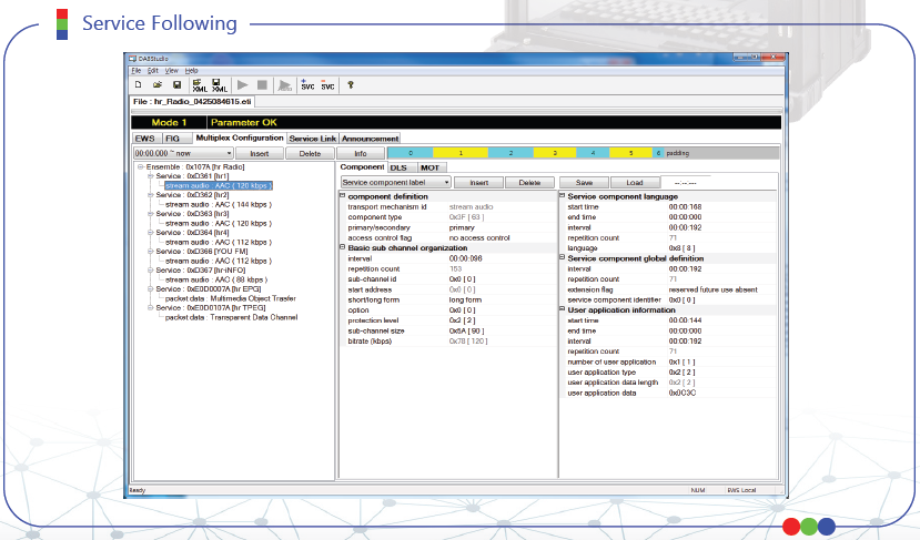 - Chỉnh sửa dữ liệu MSC (Dữ liệu kênh phụ, Dữ liệu âm thanh, MOT, DLS / DL +, SLS, Intelitext và BWS và EPG)