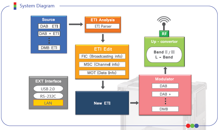 Hợp nhất DAB, DAB + ETI Analyzer, Editor, RF Generator và hỗ trợ tất cả các thông số kỹ thuật phát sóng radio của DAB) DAB Test Studio hỗ trợ tạo, xóa và sửa đổi chức năng trong tệp ETI cho DAB Test và DAB + Test. Ngoài ra, có thể chỉnh sửa, tạo các tệp xml mới với FIC (Kênh thông tin nhanh) và MSC (Kênh dịch vụ chính): DAB Test, DAB + Test, DMB Test DAB Test Studio có thể được sử dụng để phát triển và Kiểm soát chất lượng.