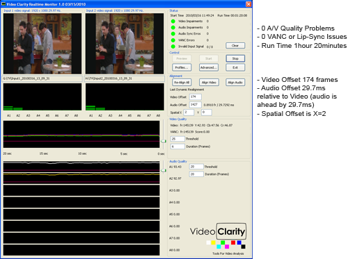RTM is an Automated, Quality-of-Experience (QoE) Monitor, which measures the quality between two points. It does this after the decoder (STB) has had a chance to hide (or fix) the problems, which is exactly what the audience sees. RTM measures the video quality, audio quality, audio or video delay (offset), audio program loudness and VANC data accuracy. If any of these drop below a preset threshold, then an alarm is triggered and the sequences are saved. RTM saves valuable man-hours by alarming on all errors which affirms what the operator already has seen or alerts them to a potential problem which was missed.